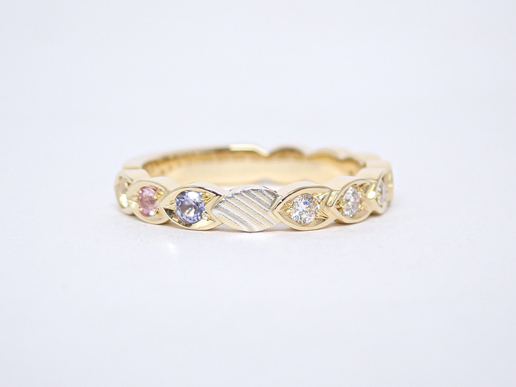 リングのお色、ご家族の誕生石や、花びらの枚数や位置など、さまざまにアレンジ可能です