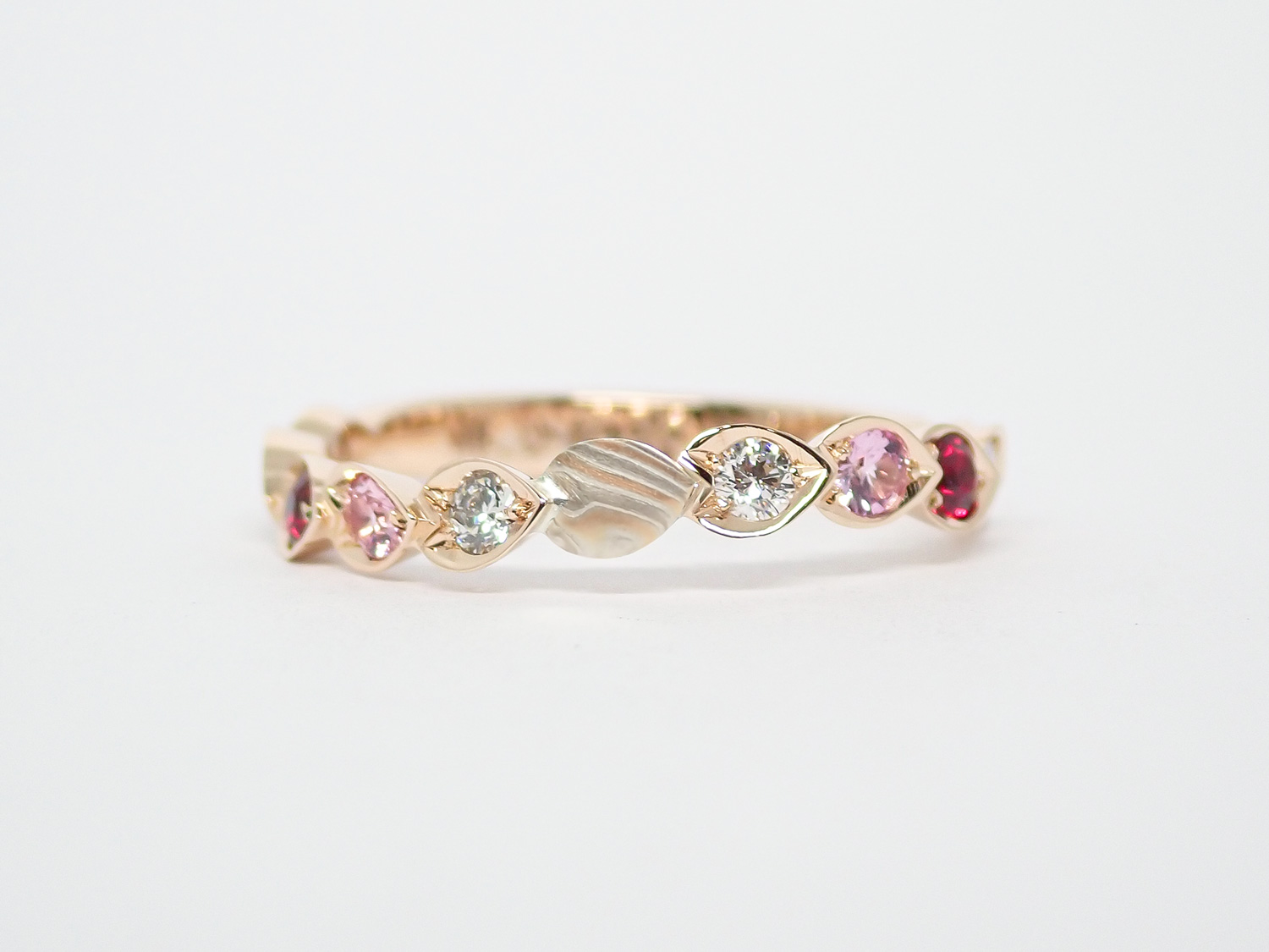 誕生石・宝石: クリアダイヤモンド(左2石)ルビー(左から3番目)ピンクサファイア(左から4番目)